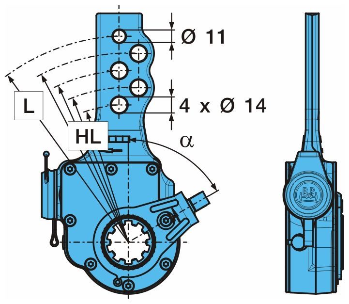 0517482443 BPW Длина рычага (HL) 120/135/150/165 = D14/L 180 = D11 Альфа (°) 60  по запросу от 2-х дней по запросу