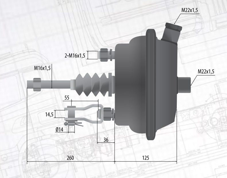 A 120,7 d1 M16x1,5 d2 M16x1,5 d3 M16x1,5 D1 201 D3 231 DL 185 L 131 s max. 75 Применение Оси прицепов BPW с барабанным тормозным механизмом Мембрана