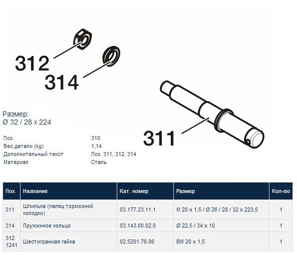 Комментарий: | Ø 32 / 28 x 224 Комплект с кольцом и гайкой |