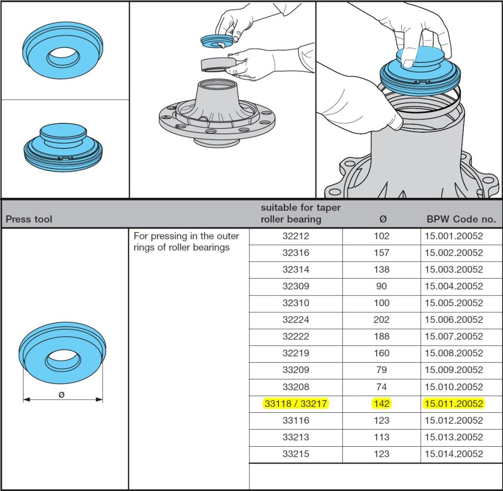 Оправка для запрессовки наружной обоймы внутреннего подшипника ступицы BPW / 1501120052
