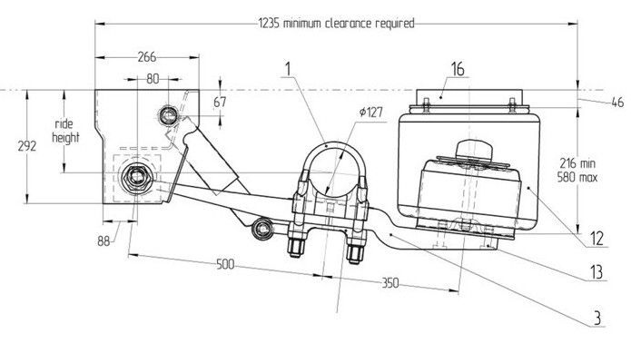 Подвеска пневматическая 12 тонн FH 240 стационарные оси