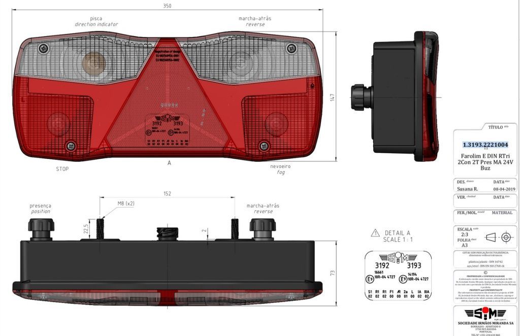ФОНАРЬ ЗАДНИЙ, МОДЕЛЬ 3193, ЛЕВЫЙ SIM / 131932221004